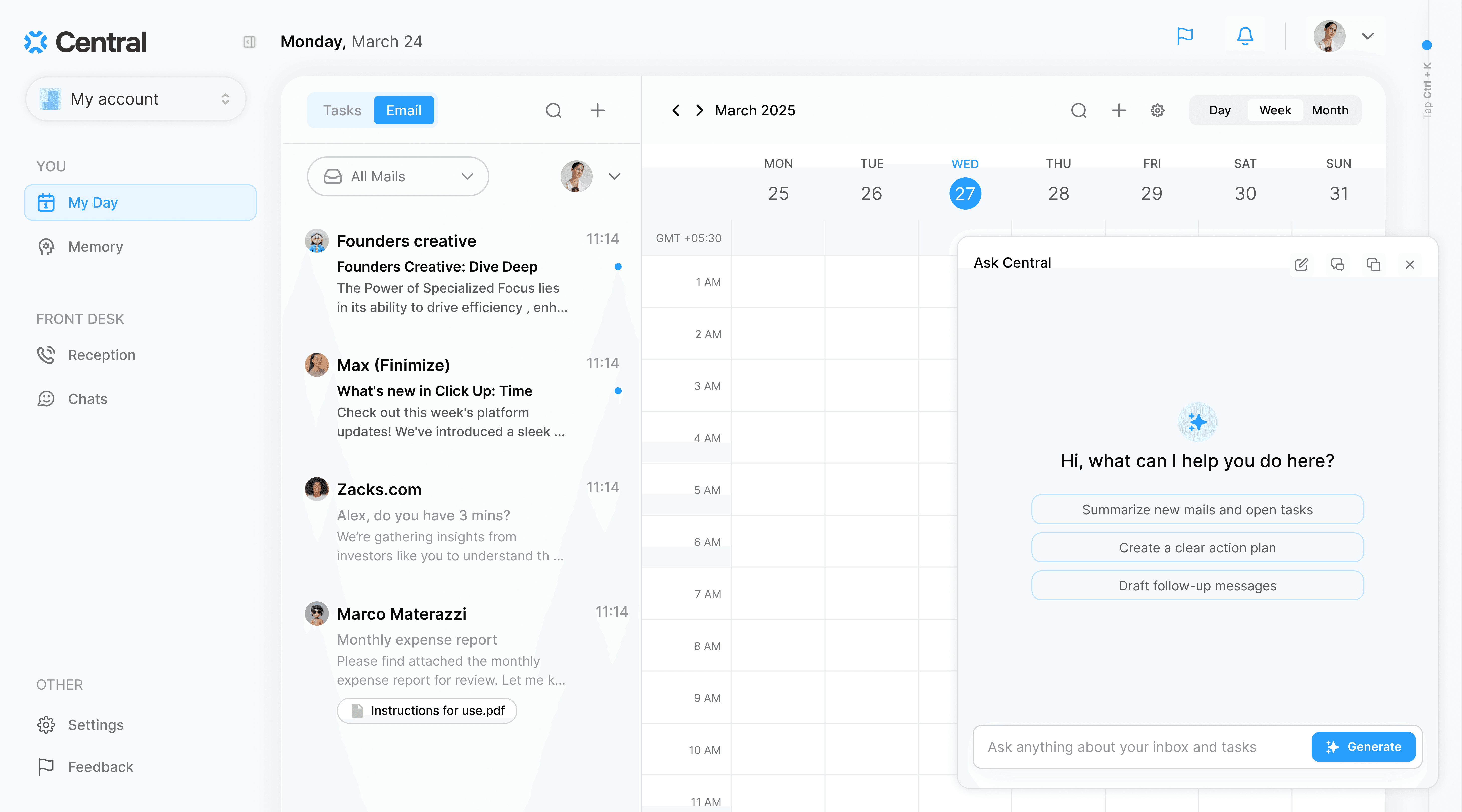 Central EA combines intelligent email management, unified task tracking, and smart scheduling into one workspace that actually understands how you work.
