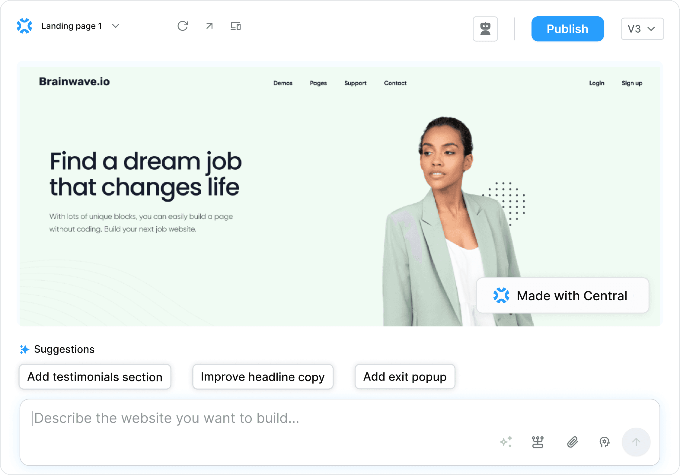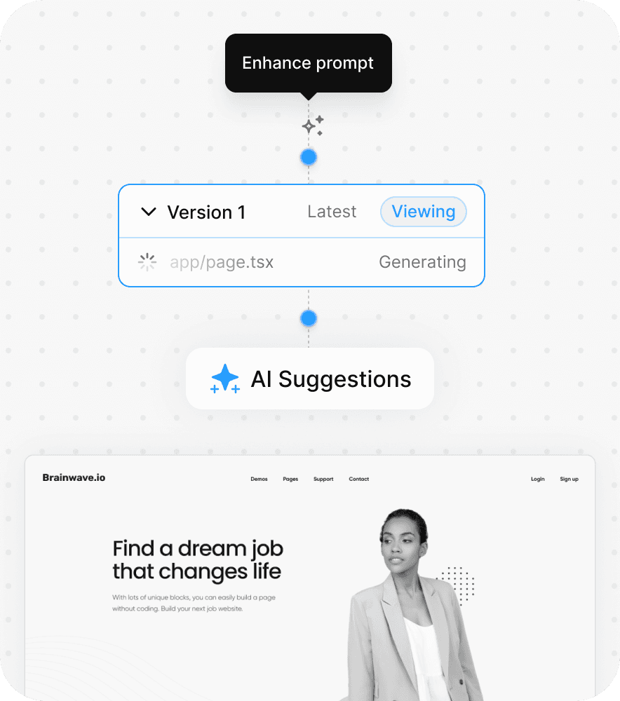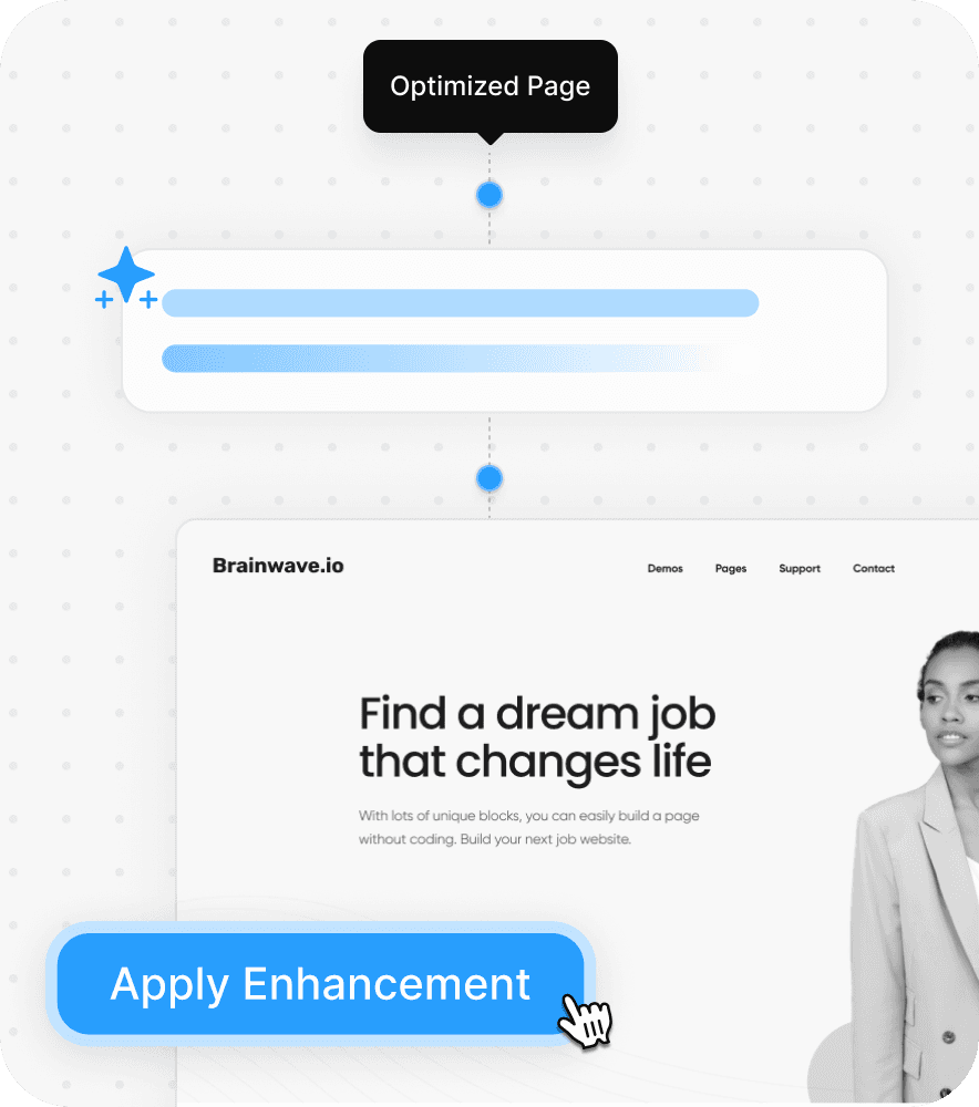 From prompt to publish in seconds. Edit visually, version easily, and optimize for conversions automatically.