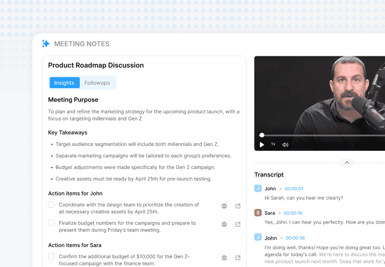 Capture and share meeting notes with automatic summaries, key points, and action items.