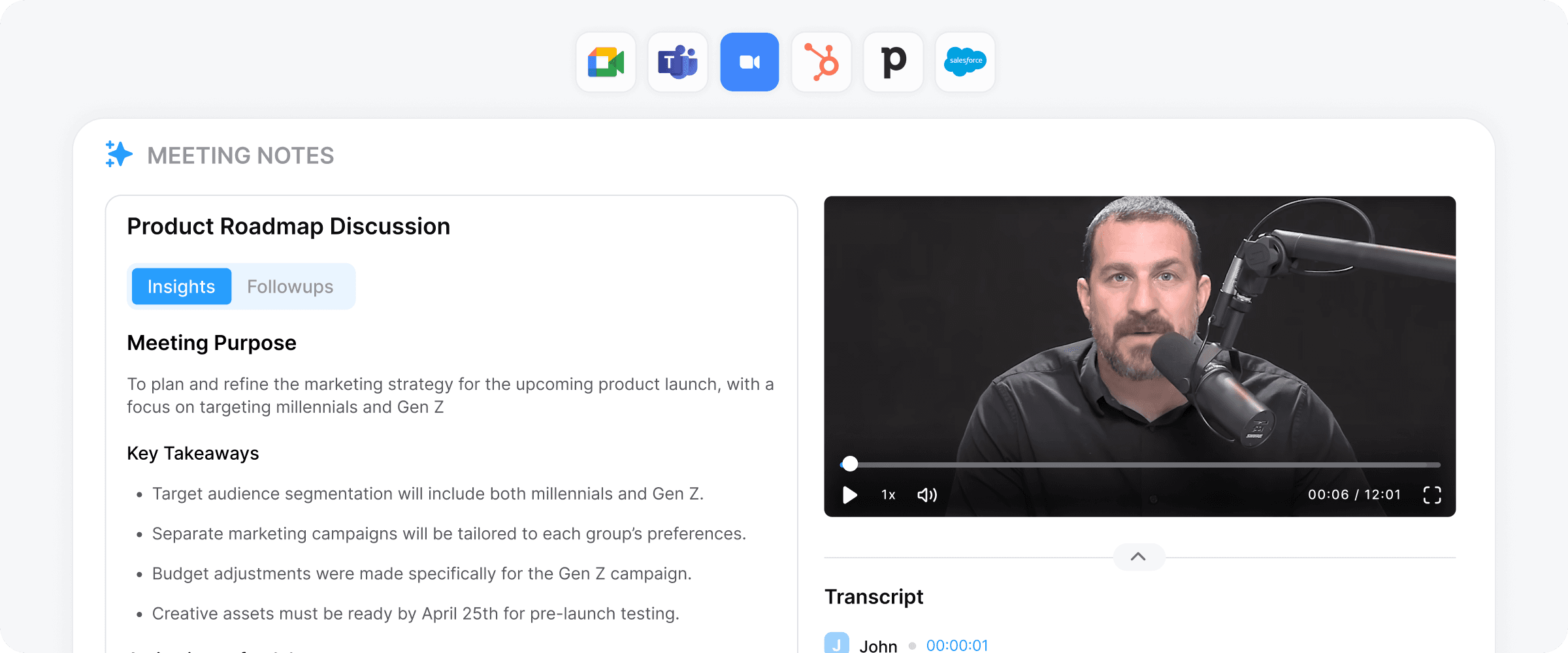 Automatically captures and summarizes meeting notes, so you never miss important details.