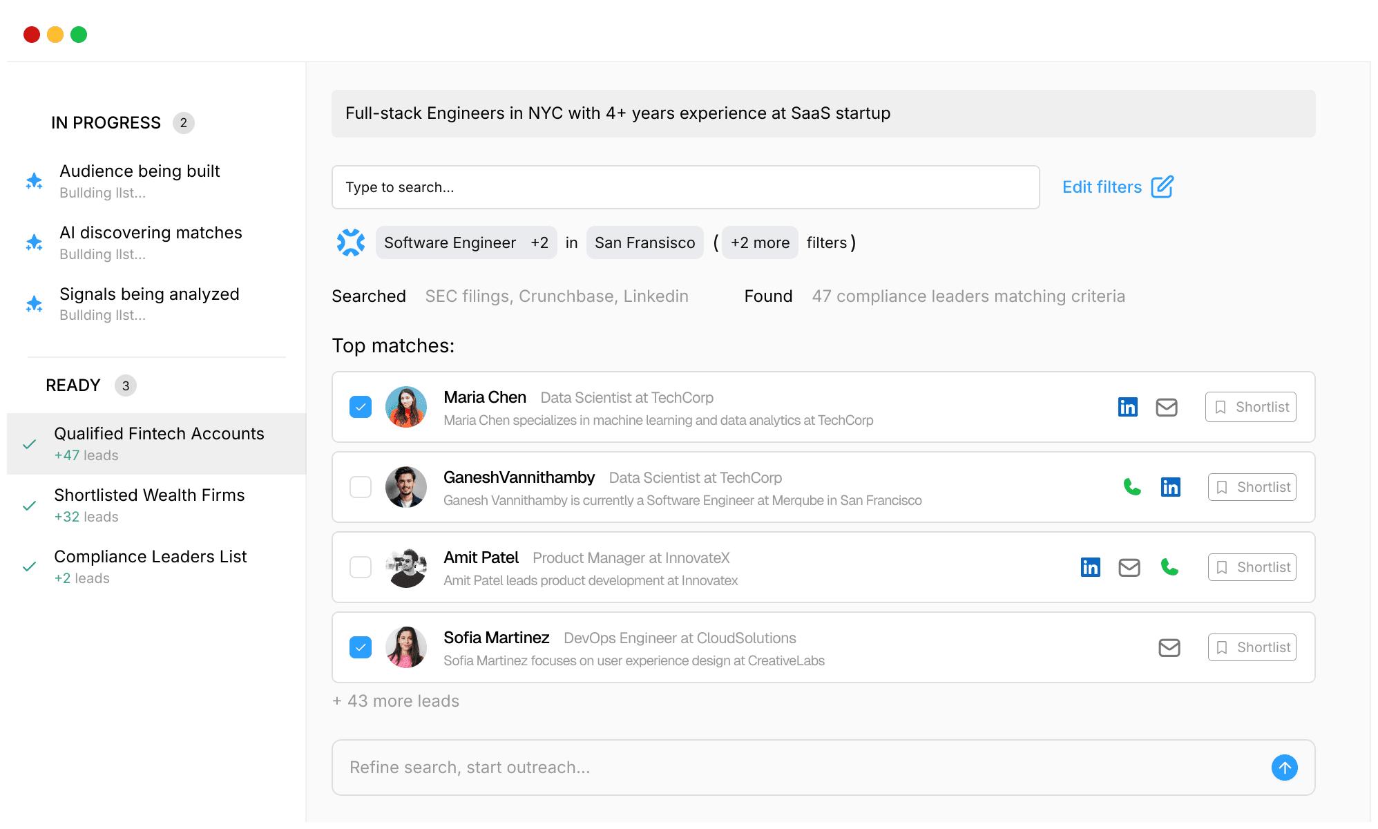 Most users see their first qualified prospects within minutes and start conversations the same day.
