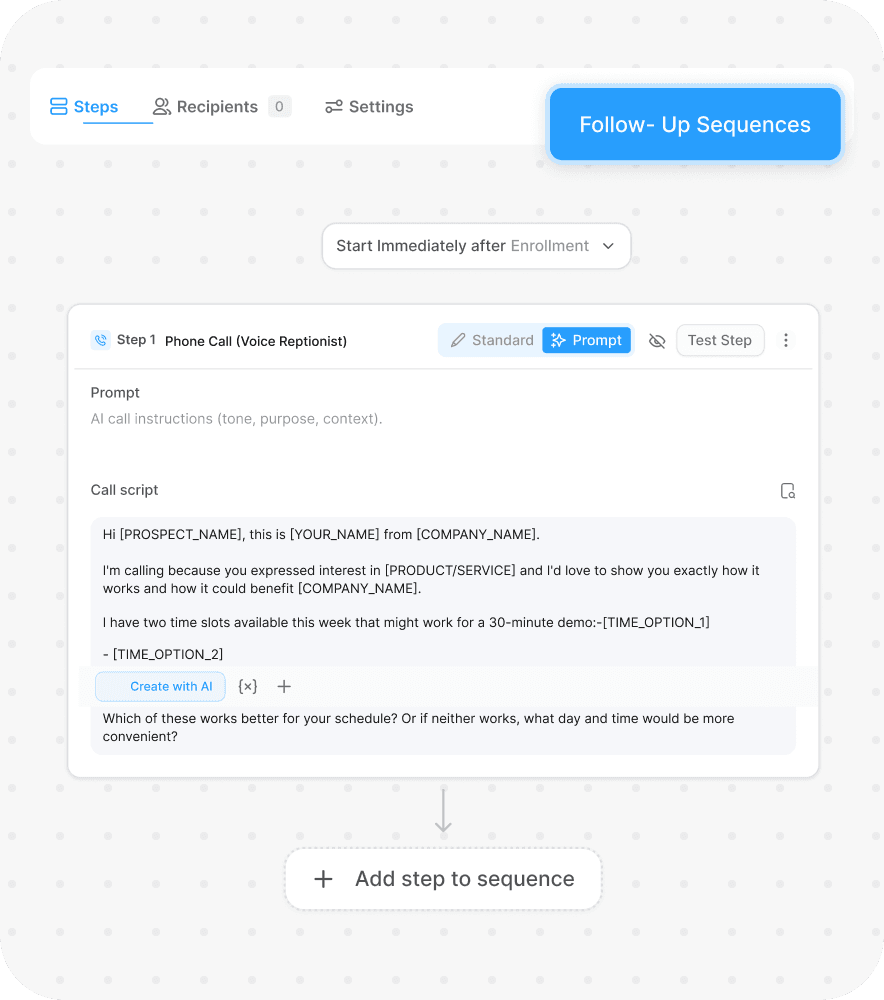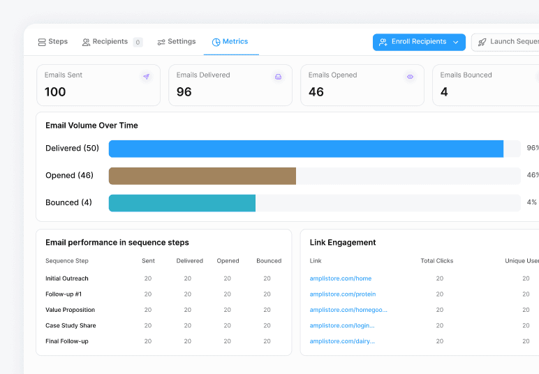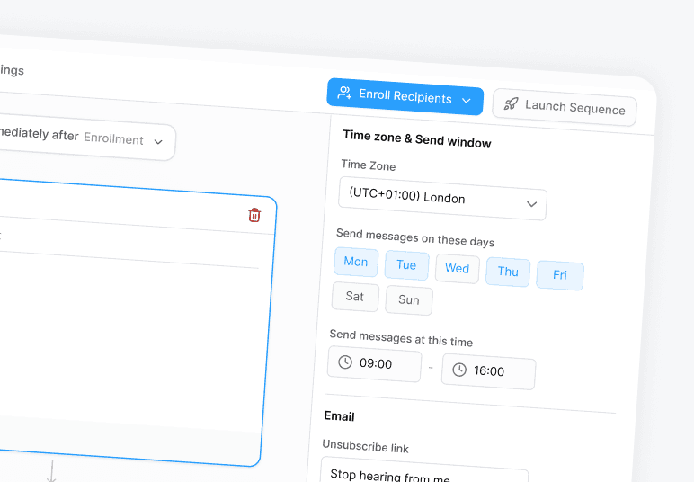 Create a multi-step sequence while AI researches prospects and sends personalized messages automatically.