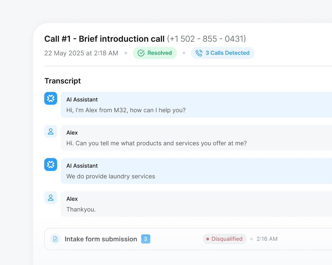 With our Al-powered Front Desk, calls, chats, and forms are captured instantly. Central isn't an old-school chatbot. It can qualify your potential customers' requests and guide them through the next steps.