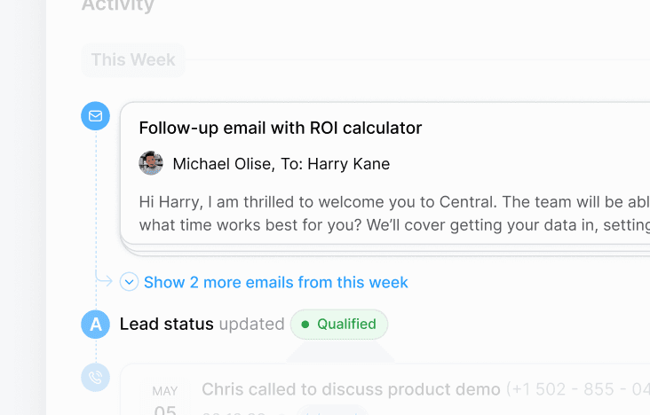 When a conversation progresses, Central updates the CRM and support records automatically.