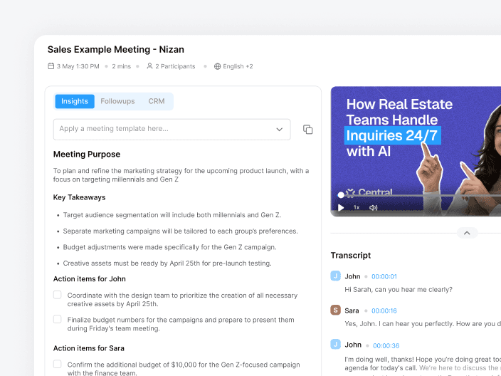 Summaries and action items are generated immediately after meetings, keeping decisions documented.