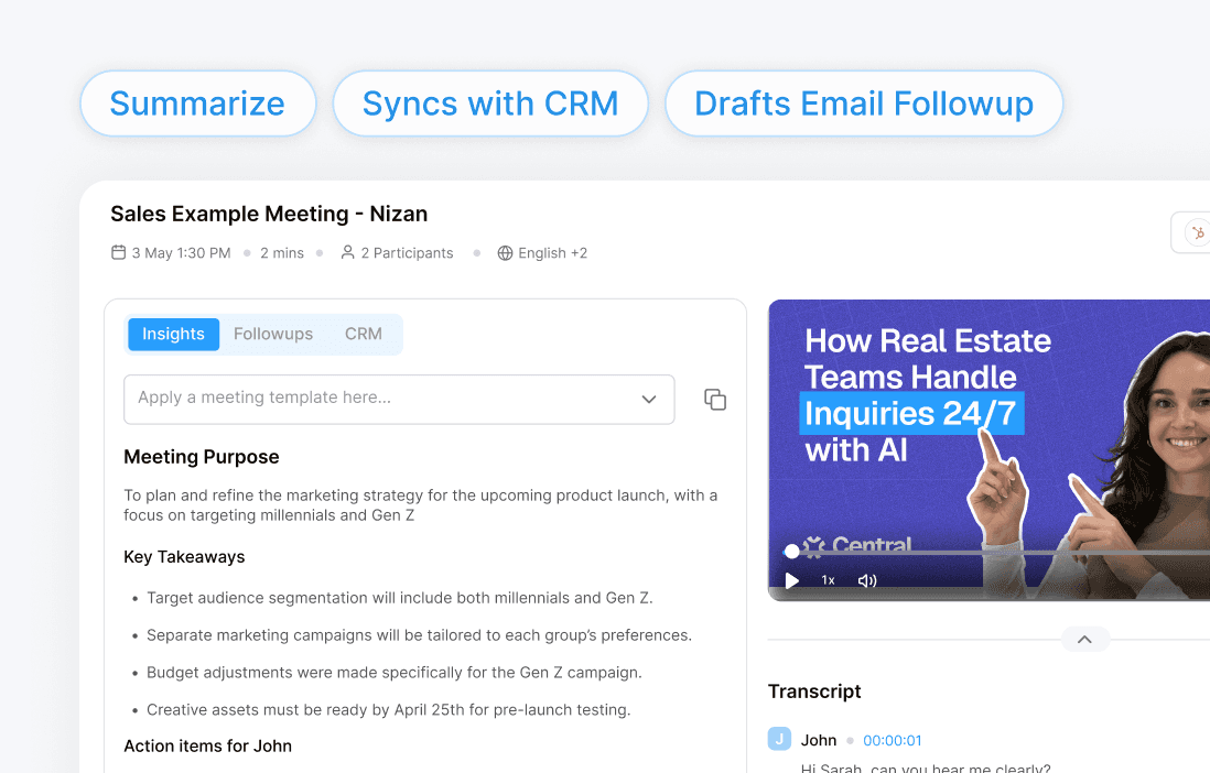 From recap to task assignment to CRM sync, follow-through starts the moment the meeting ends.